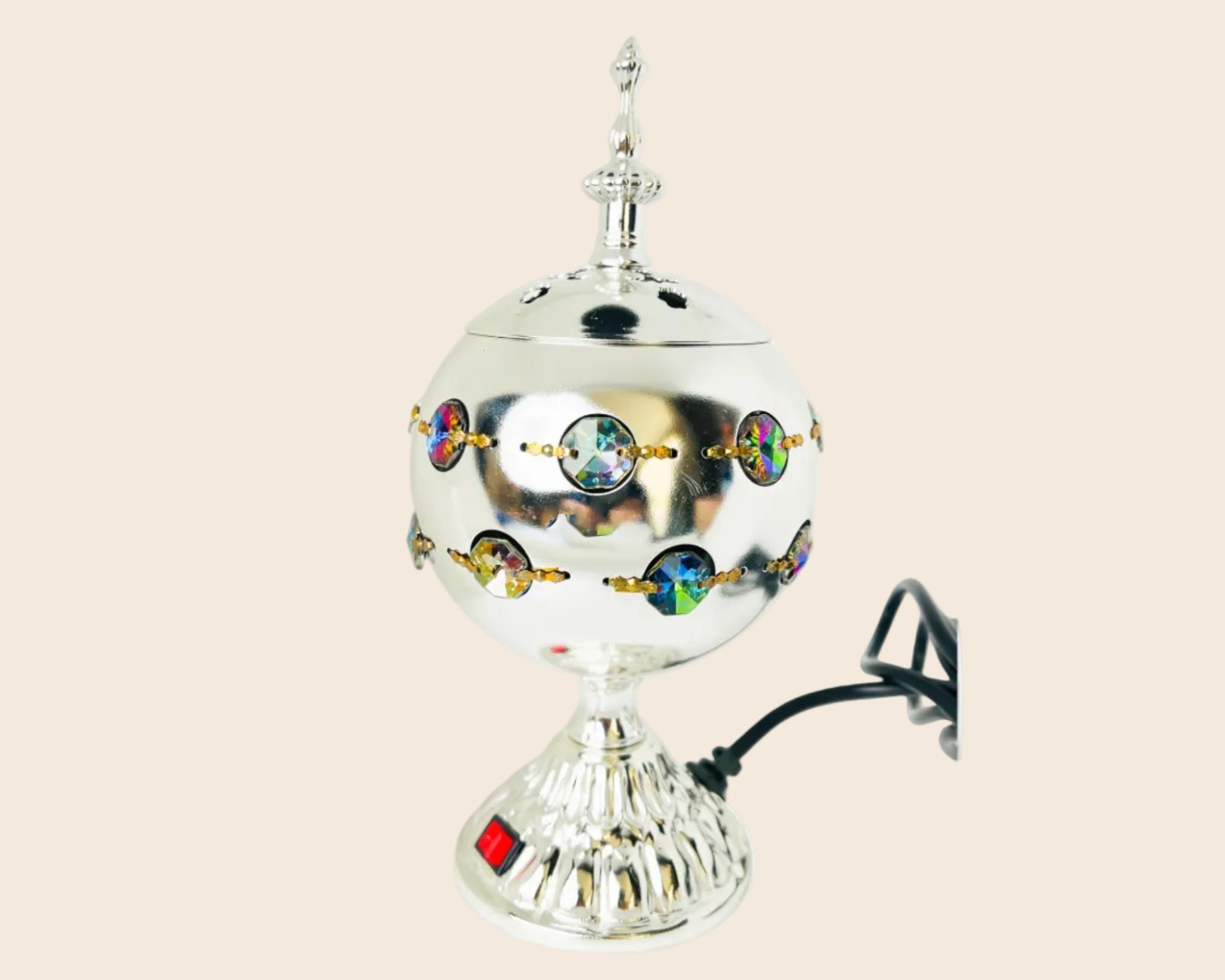 Comme vous, nous aimons beaucoup les parfums d’encens, c’est pourquoi notre encensoir électrique fait parti de nos produits préférés. Notre brûleur d’encens électrique au style oriental vous permettra de diffuser les encens Bakhour dans vos intérieurs. Il vous évitera d'utiliser des charbons qui demandent plus de temps de préparation. De plus, il sera un véritable objet de décor sur un buffet ou une table.